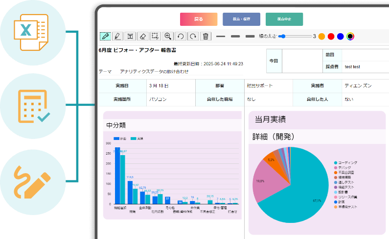 提出された改善報告書に対して、画面上でスムーズに採点できます。採点結果は、提出者にも見やすい形でフィードバックされ、コメントによる評価も確認可能です。振り返りや次回改善にすぐ活かせます。